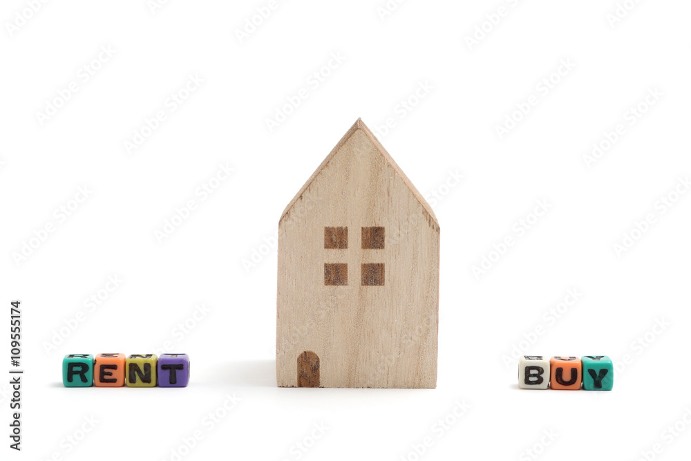 Miniature Houses With Alphabet Blocks That Spell Buy And Rent On White Background Stock Foto Adobe Stock